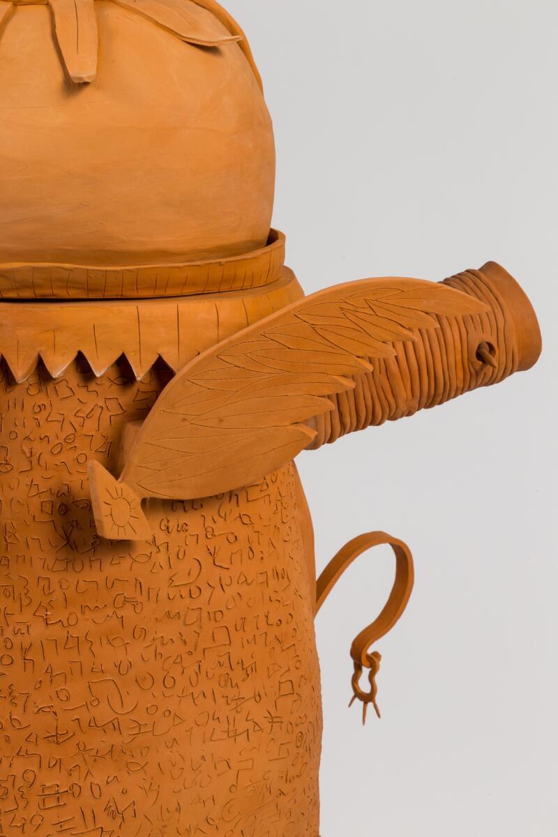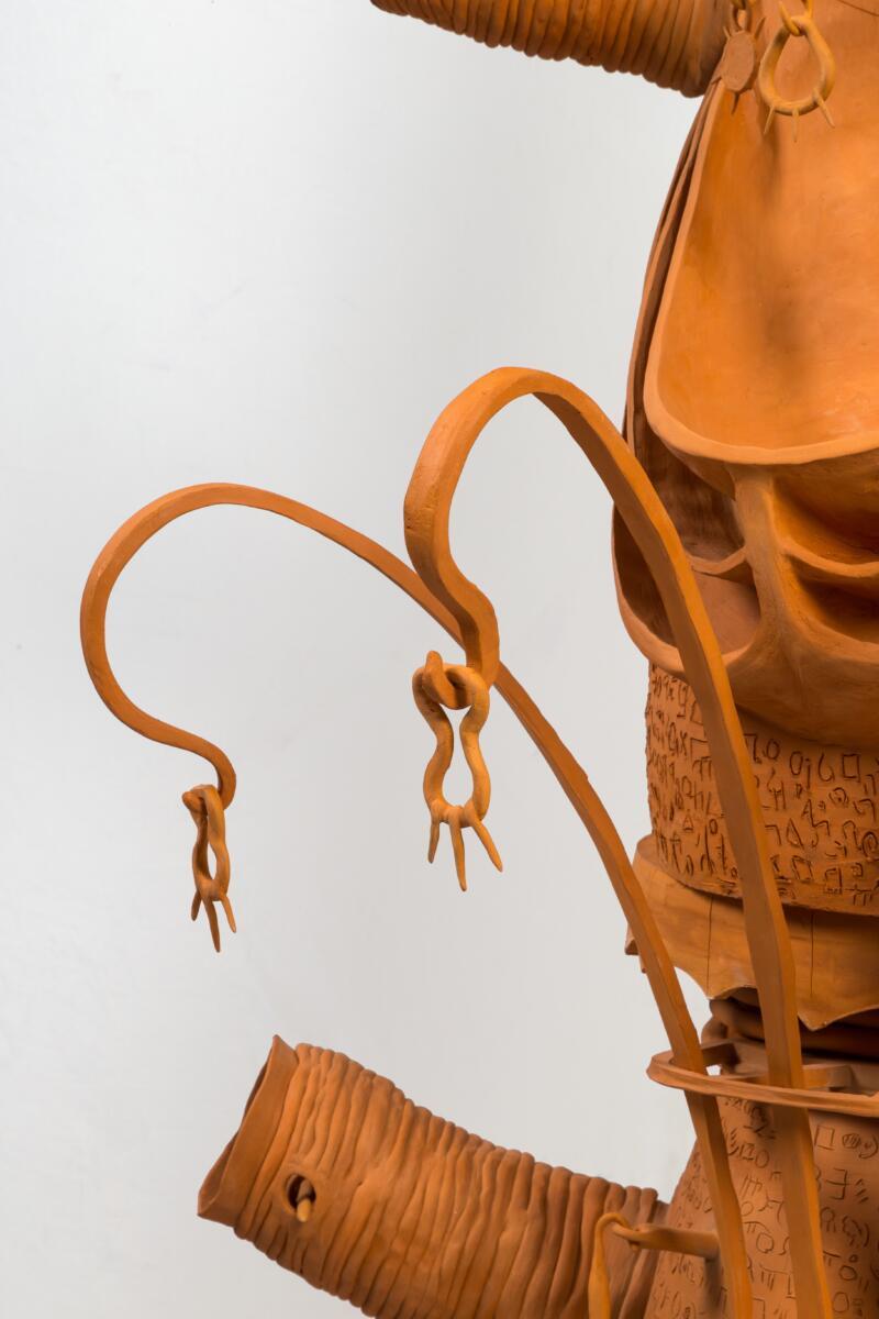 PHOENIX, clay and metal, 180x68x68 cm, 2021