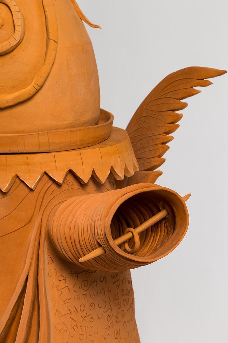 PHOENIX belongs to an ongoing series of sculptural ceramic creatures, which I imagine as a ‘chorus of priests’; a totemic figure whose form relates to the human body, comprised of animalistic and apotropaic elements which can be translated both as existing symbols and traces of personal memories, ambiguous elements which fluctuate between protection and fear.
