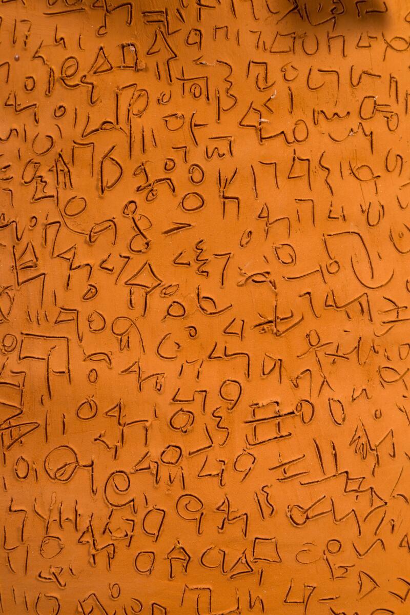 In need to decipher my own subconscious imagery, I explore worldwide mythology, searching for traces of shared experiences, which traverse geography and time, in conversation with what Carl Jung describes as “the constant and permanent connection of the person with mythological archetypes”. Elements of my own memories become intertwined with a variety of civilizational references, in a non-hierarchical manner, cul- minating into a personal language of animalistic forms, mythological symbols and traces of imaginary writing, as she relates to the notion of a primordial collective consciousness which exists before language, yet encompasses all ‘languages’.